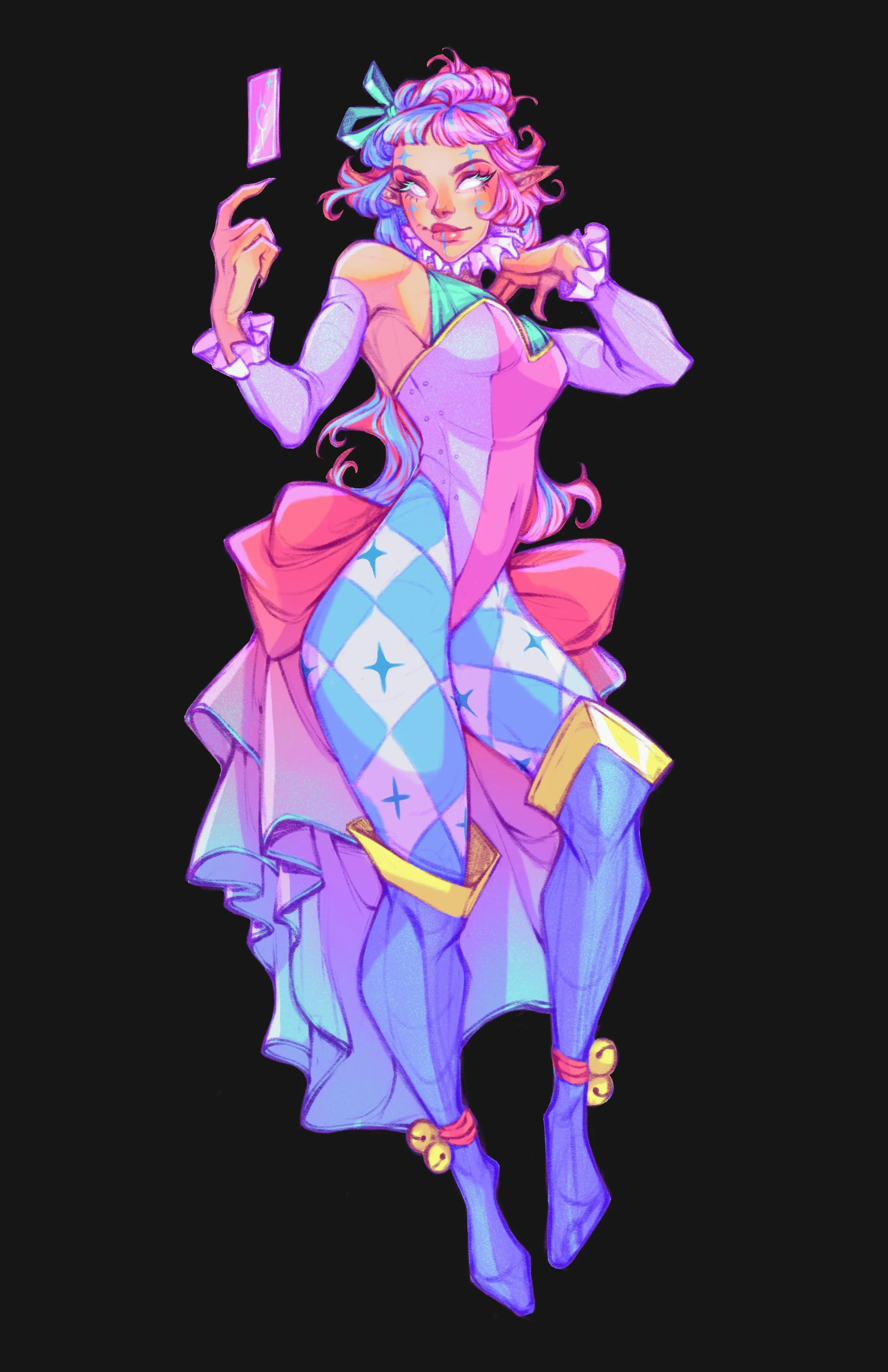 A jester for the fae courts, the Changeling Hitch is a semi-talented sorceress. Sometimes, things don’t go as planned and a spell will transmute or fizzle in a totally opposite direction.